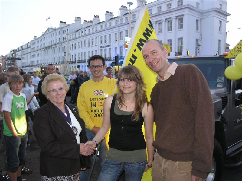 mit wehenden Fahnen durch Eastbourne gefahren. |