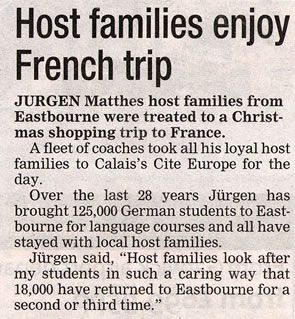 direkt vor die Haustür zu ihrer englischen Gastfamilie
